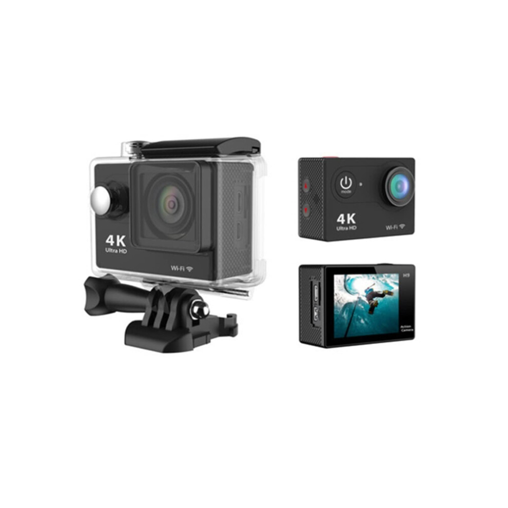 Ultra HD Underwater Camera H9R 12MP 2 Inch LCD 30M Waterproof Remote Control Sports Cam for Helmet Bicycle Outdoor Use Noir