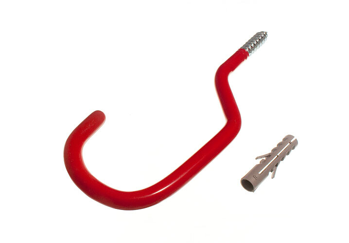 5 X Red Plastic Coated Screw In Bicycle Wall Elephant Hooks With Wall Plug | One