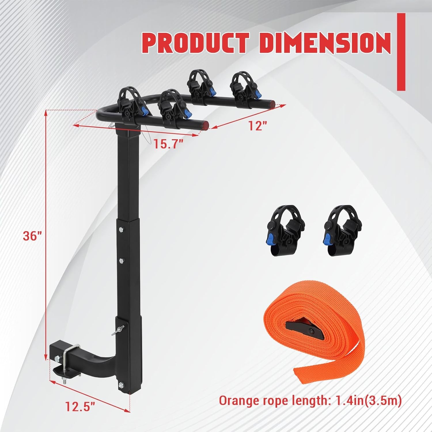 Hitch Mounted Bike Rack 2-4 Bike Capacity 2 In Receiver Foldable Bicycle Carrier