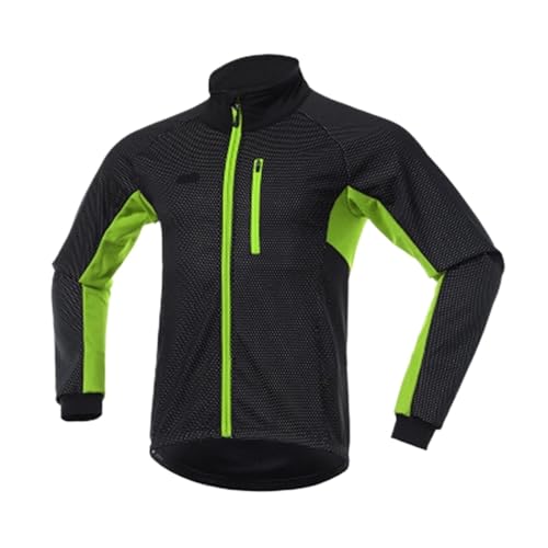 CLMETHE Men's Cycling Jacket Winter Thermal Fleece Softshell Bike Jersey Mountain Running Hiking Biking Coat MTB Bicycle Outwear Full Zip Clothes,Green-XL