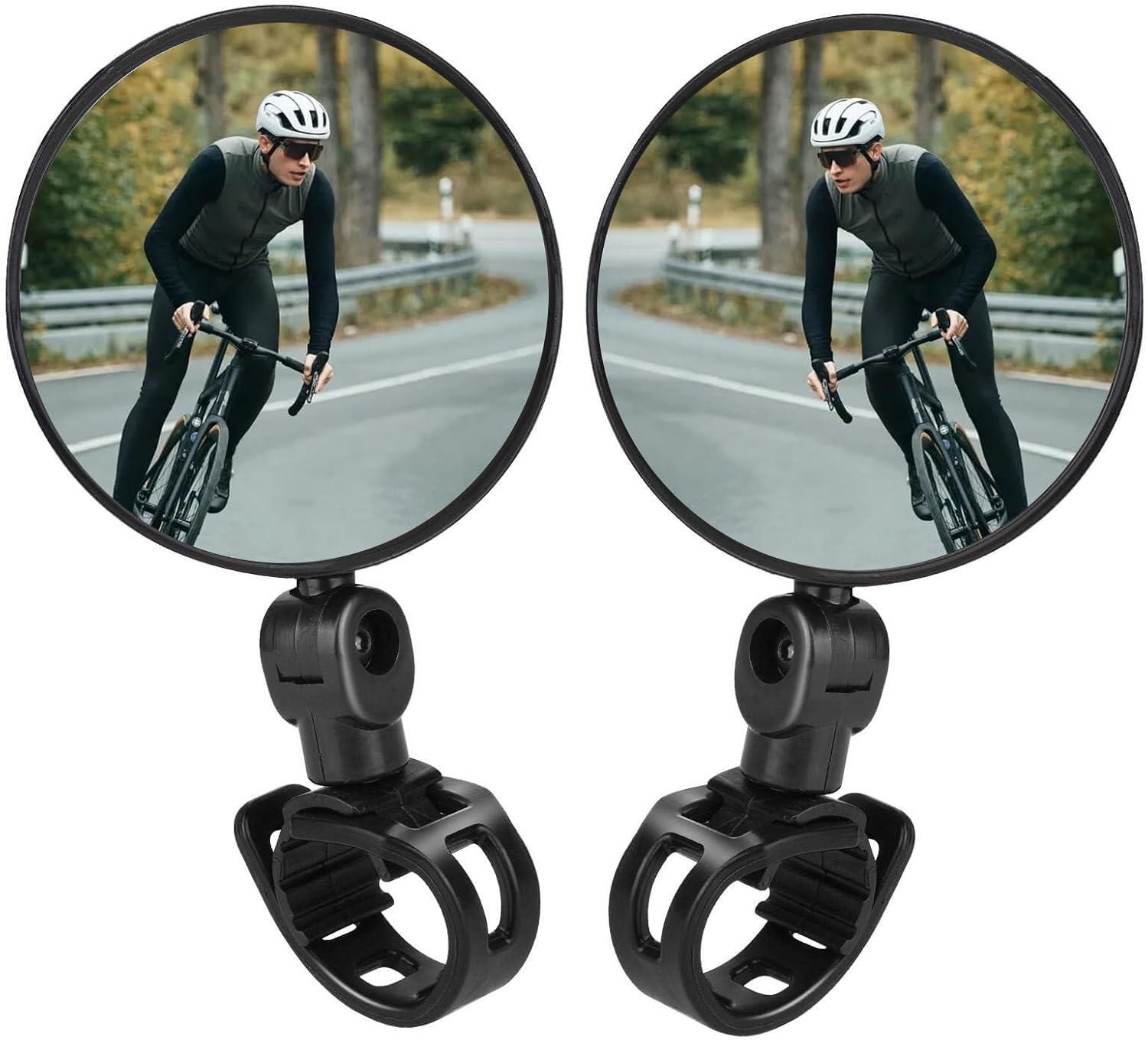 flintronic 2 x 360 Degree Rotating Wide Angle Bicycle Mirrors Acrylic Convex Safety Mirrors for Handlebar 22-30mm Accessories for All Bikes, Motorcycles