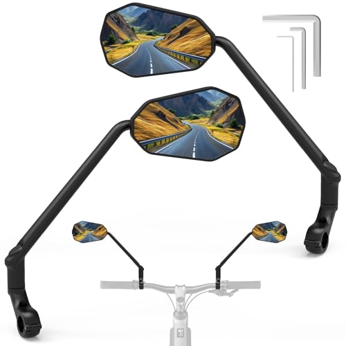 Long Bike Mirror, [HD Large Wide Angle] [1 Pair] Diyife Bicycle Rearview Mirrors, 360°Rotatable Cycle Mirrors for Bike Handlebars 22-25.5mm, Shockproof Rear View Mirror for E-Bike Scooter Motocycle