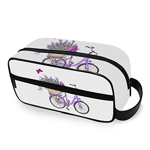 Violet Bicycle with Lavender Flowers in Basket and Butterflies Women's Portable Makeup Bag with Handle, Cosmetic Bag, Travel Cosmetic Bag Durable Toiletry Storage Organizer 11 x 7 x 5.7 inch