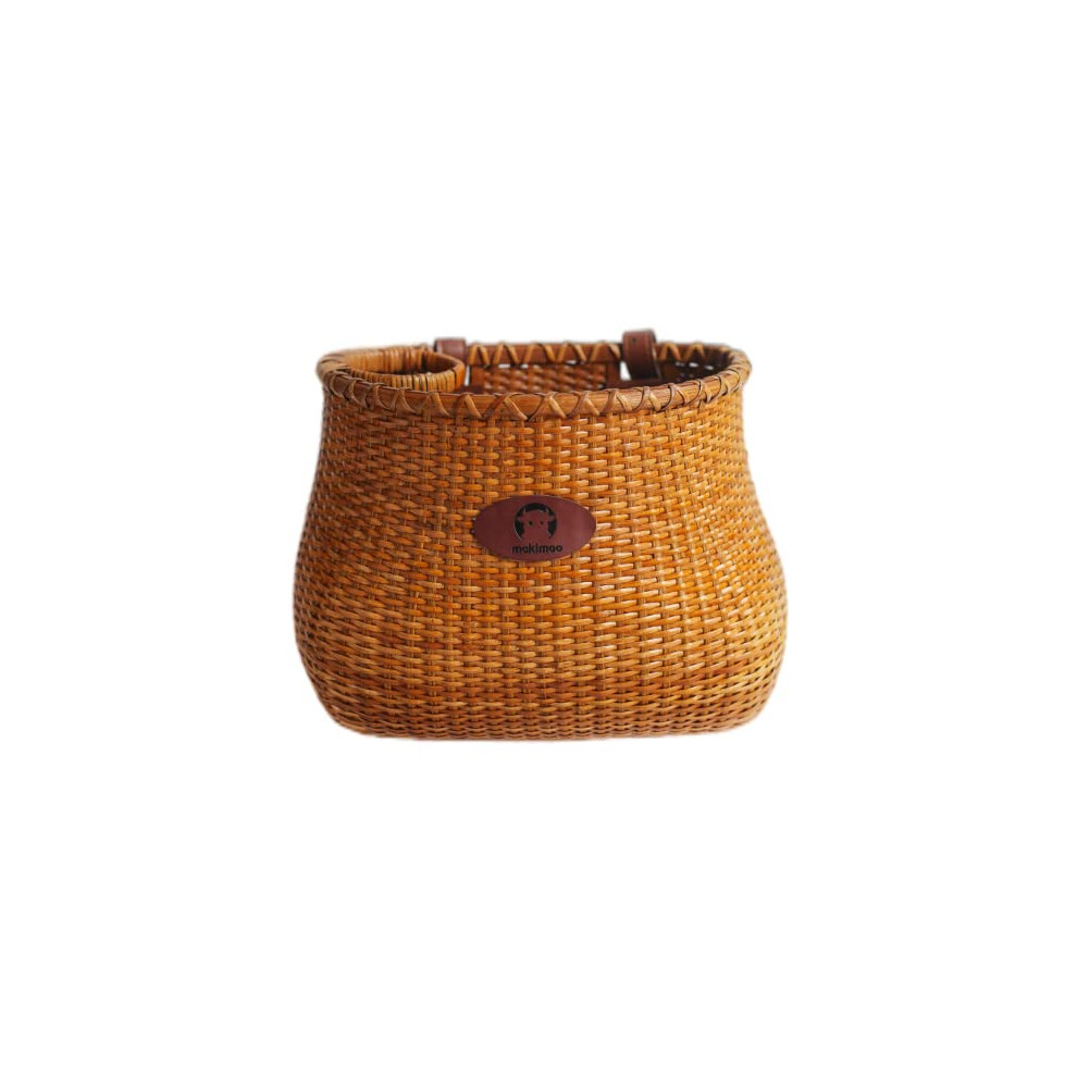 Makimoo Bike Basket for Women's Beach Cruiser or Scooter The Original Wicker Bicycle Baskets with Built in Cup Holder for Front Handlebar-Classic Vintage Style Handmade Natural Rattan Wicker