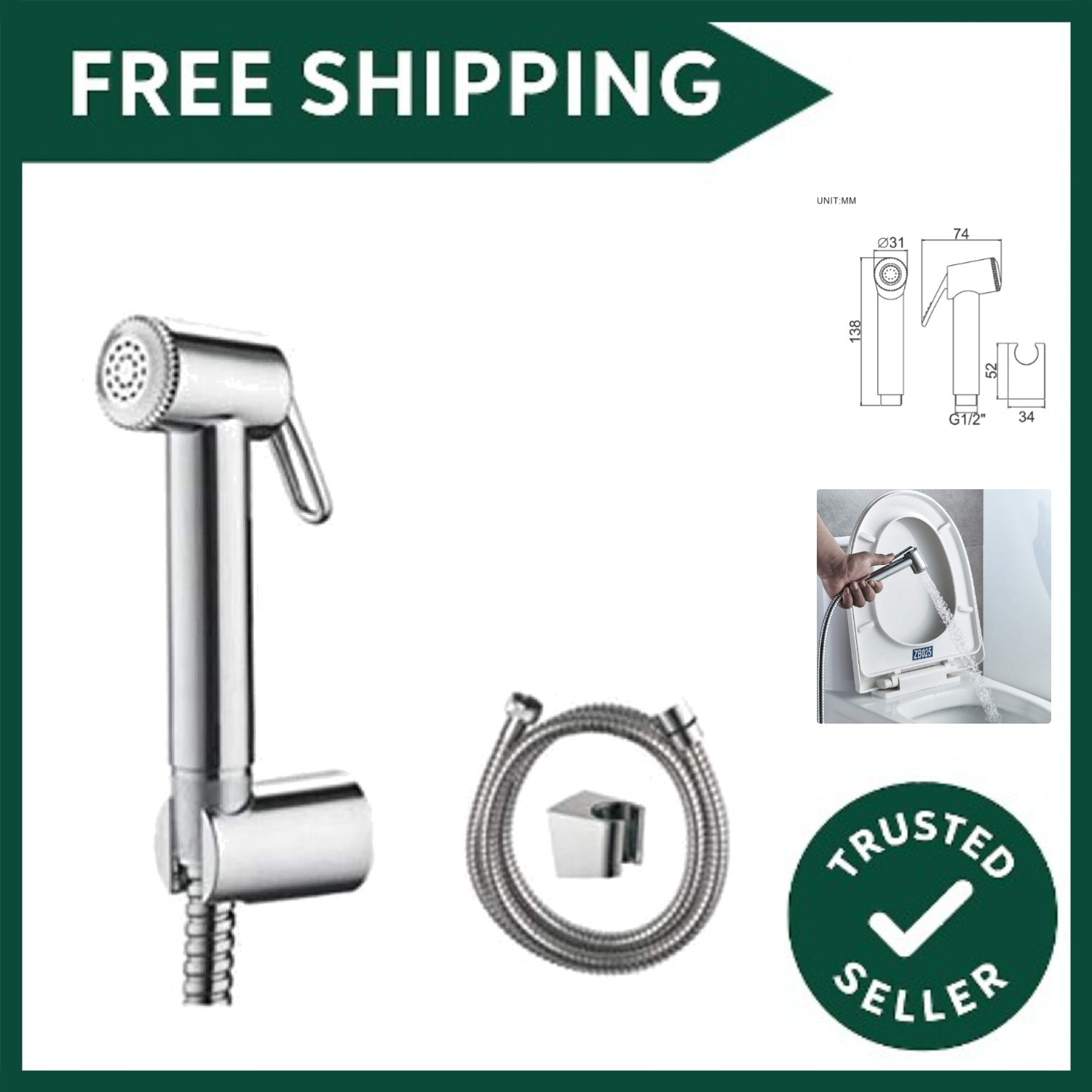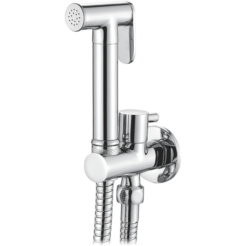 Bidet Sprayer Attachment for Toilet UK, Handheld Muslim Shower for Toilet with Hose and Holder, Chrome, Silver M20282