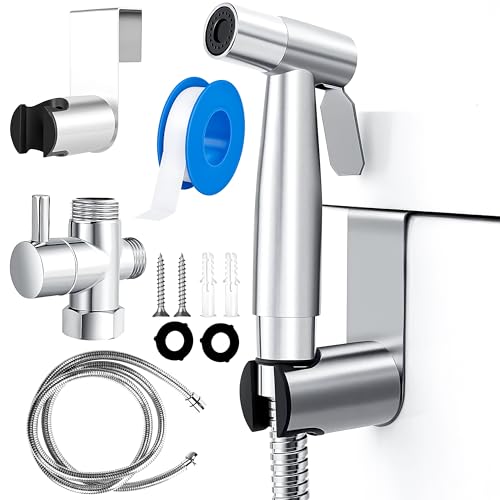 Ibergrif Handheld Bidet Sprayer Kit, Stainless Steel Shower Spray Bidet Attachment w/Hose for Toilet UK, Bathroom Shattaf Cloth Diaper for Feminine Hygiene, Pet Shower, Chrome, M22015R