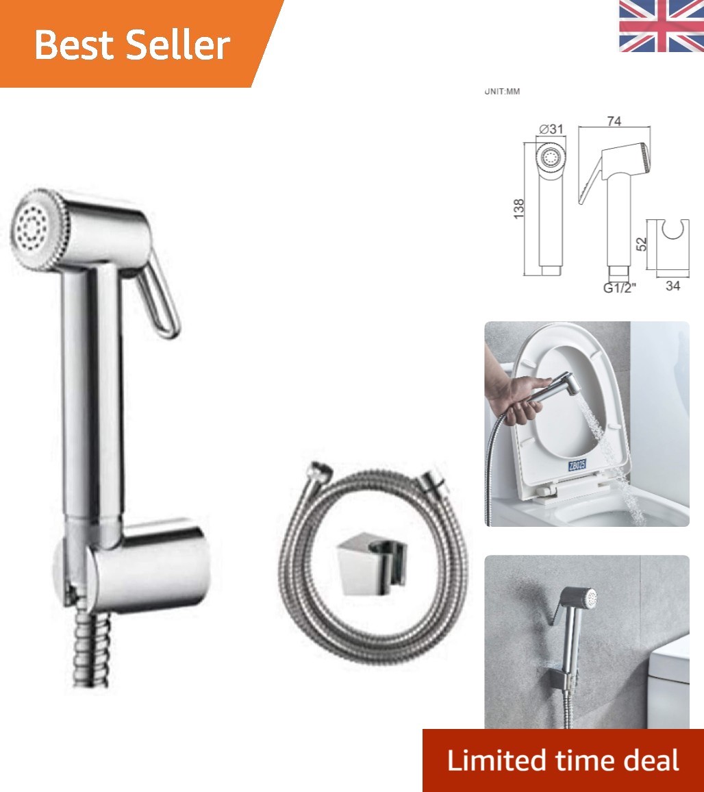 Versatile Bidet Shower Spray Attachment for UK Toilets - Stainless Steel Handle