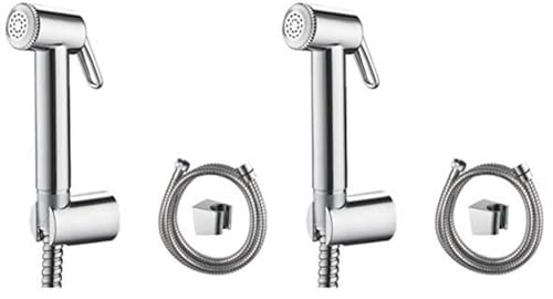 Ibergrif Bidet Sprayer Attachment for Toilet UK, Handheld Muslim Shower for Toilet with Hose and Holder, Chrome, Silver M20282 (Pack of 2)