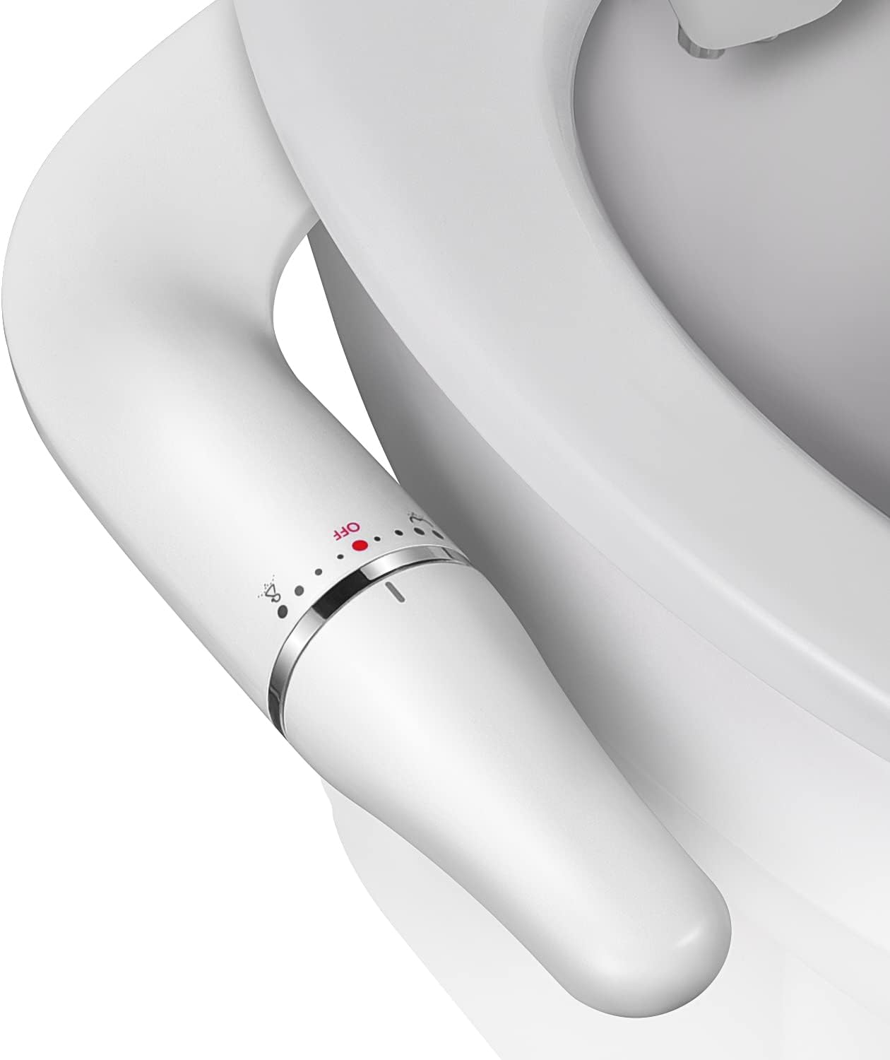 Bidet Attachment for Toilet UK- SAMODRA Non-Electric Cold Water Bidet Toilet Seat Attachment with Pressure Controls,Retractable Self-Cleaning Dual Nozzles for Frontal & Rear Wash - White