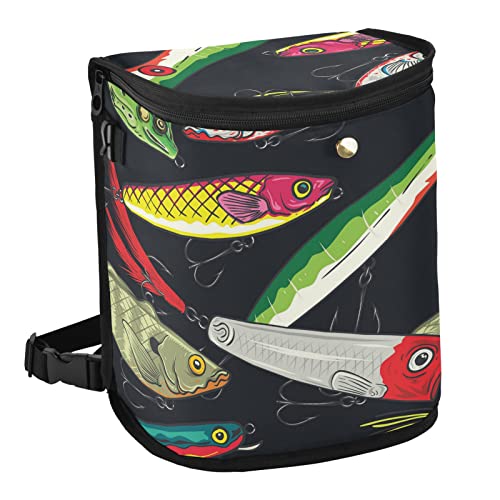 Oyihfvs Pop Colorful Fishing Lures Seamless On Black Spill-Proof Car Trash Can Organizer Hanging Large Auto Garbage Storage Bag Bin with Big Opening Lid Leakproof Waste Basket