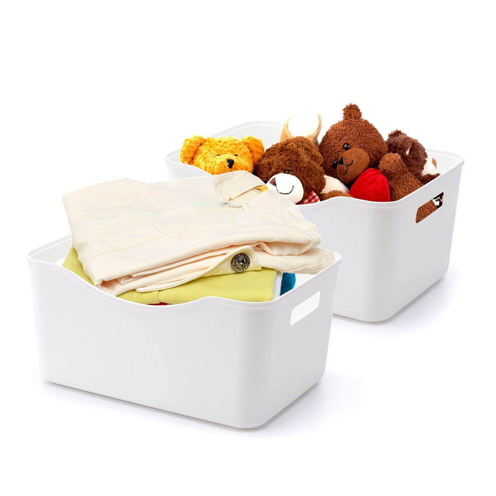 BigTron Storage Bin with Handle-Home Organizers Basket for Kitchen Pantry, Bathroom Vanity, Laundry, Health, Refrigerator and Beauty Product, Under Cabinet Caddy (Large - 2 Pack, White)