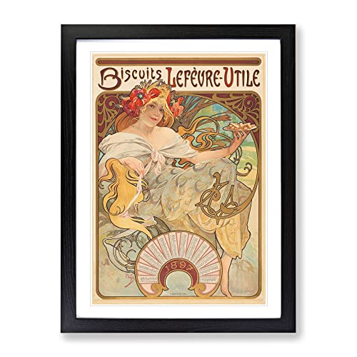 Biscuits Lefevre By Alphonse Mucha Classic Painting Framed Wall Art Print, Ready to Hang Picture for Living Room Bedroom Home Office Décor, Black A3 (34 x 46 cm)