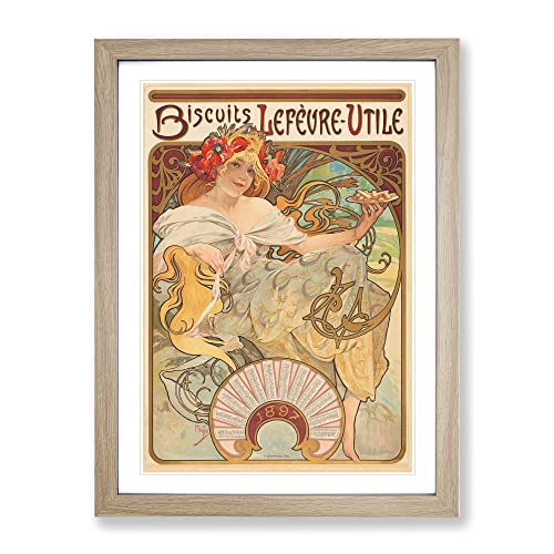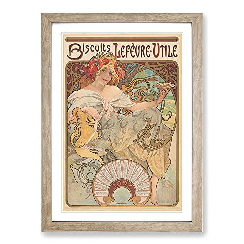 Biscuits Lefevre By Alphonse Mucha Classic Painting Framed Wall Art Print, Ready to Hang Picture for Living Room Bedroom Home Office Décor, Oak A3 (34 x 46 cm)