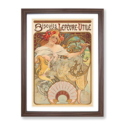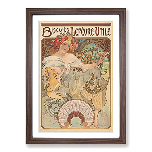 Biscuits Lefevre By Alphonse Mucha Classic Painting Framed Wall Art Print, Ready to Hang Picture for Living Room Bedroom Home Office Décor, Walnut A3 (34 x 46 cm)