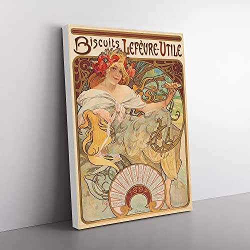 Biscuits Lefevre By Alphonse Mucha Canvas Print for Living Room Bedroom Home Office Décor, Wall Art Picture Ready to Hang, 30 x 20 Inch (76 x 50 cm)