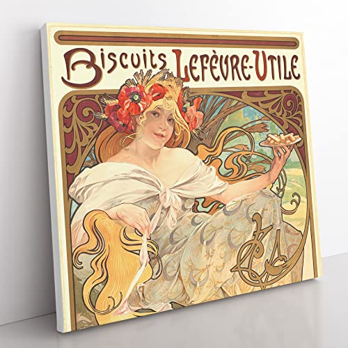 Biscuits Lefevre by Alphonse Mucha Vintage Canvas Wall Art Print Ready to Hang, Framed Picture for Living Room Bedroom Home Office Décor, 50x50 cm (20x20 Inch)