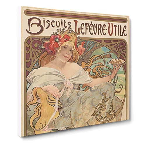 Biscuits Lefevre by Alphonse Mucha Vintage Canvas Wall Art Print Ready to Hang, Framed Picture for Living Room Bedroom Home Office Décor, 20x20 Inch (50x50 cm)