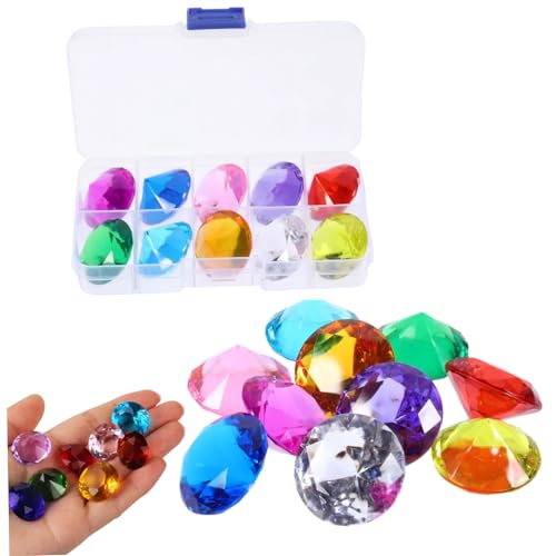 Trrymbbe 10Pcs/Set Fake Diamonds, Glass Gems for Kids Set, 1 Inch Big Colorful Diamonds with Box Diving Toys Gemstones for Kids Swimming Pool Party Favors