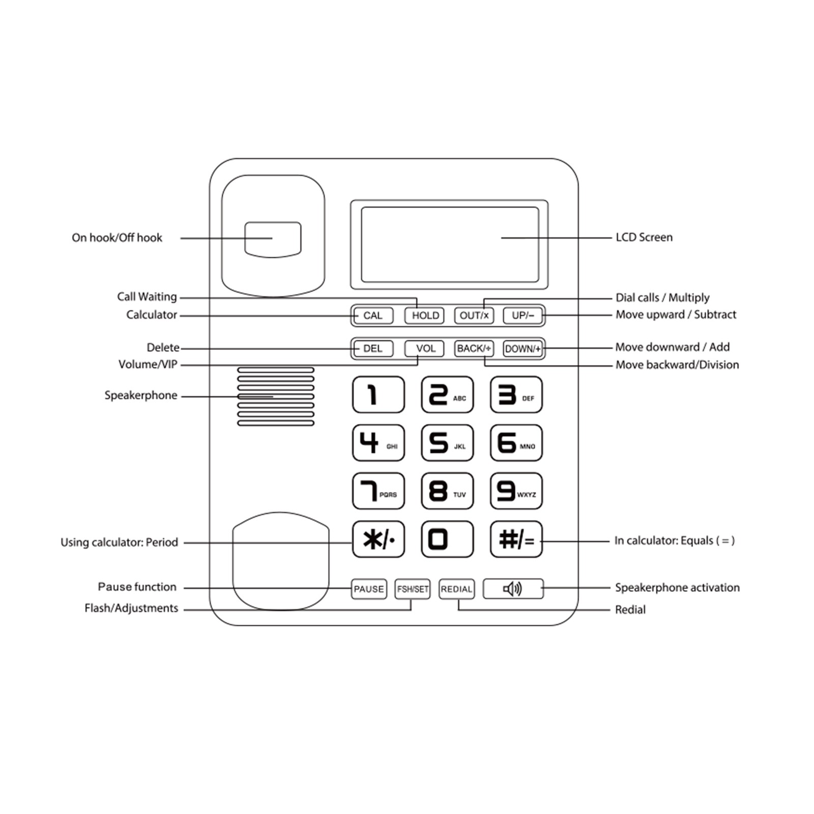 Desktop Telephone Hotel Landline Phone Big Oval Button Home Corded Phone HD