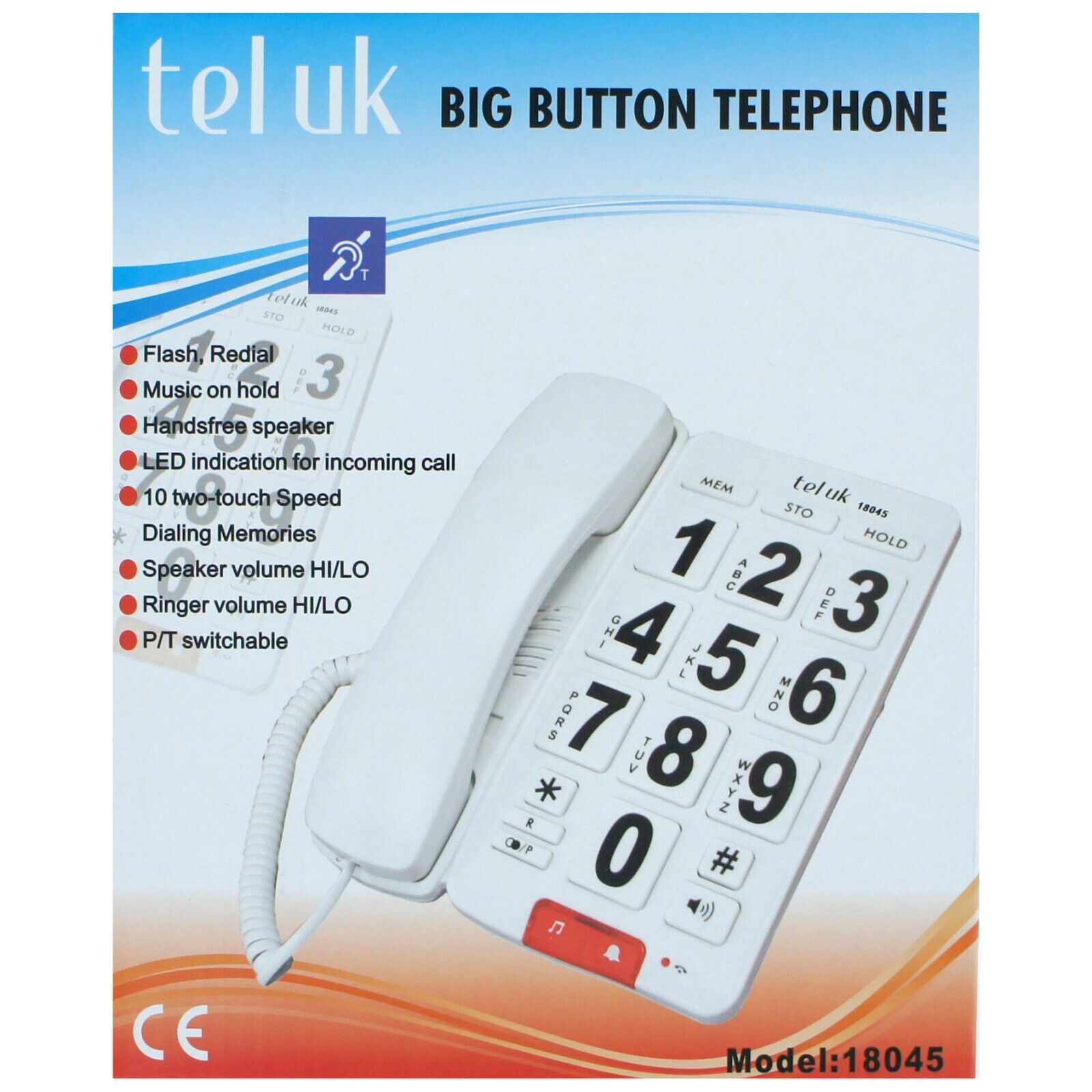 Tel UK 18045 Big Button Corded Telephone Desk Phone│Easy to Read│White