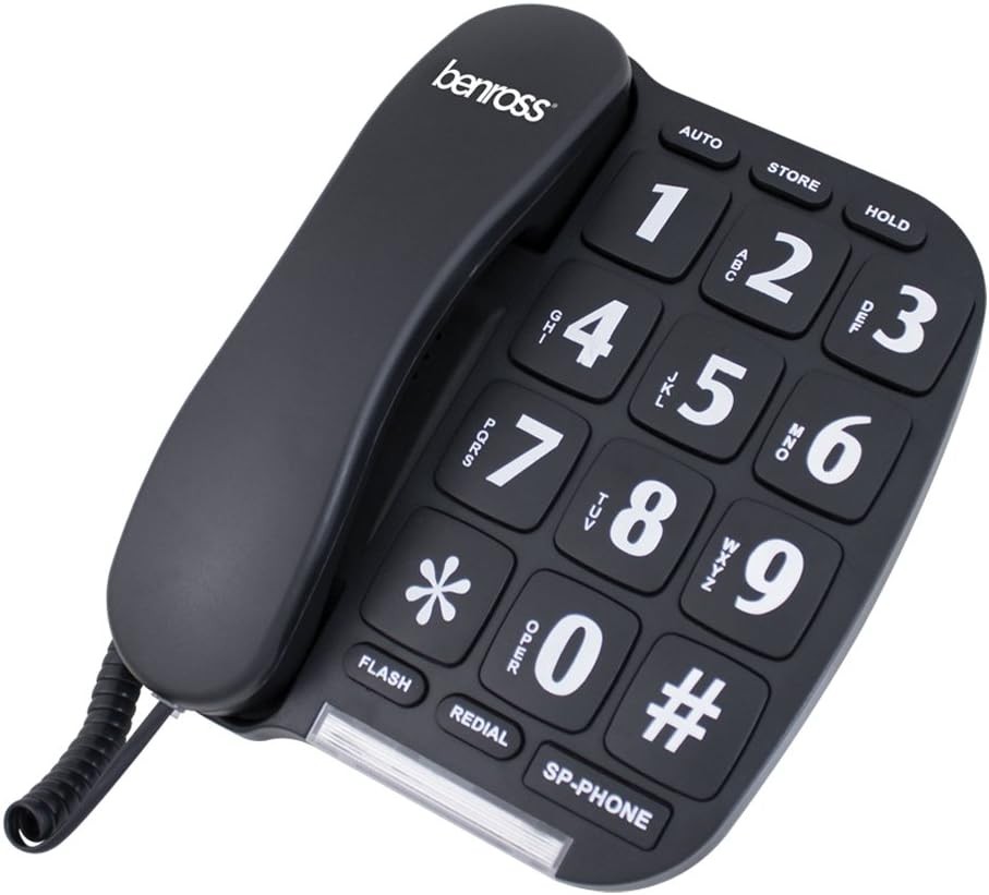 Benross 44570 Jumbo Big Button Home Landline Telephone for Elderly and Disabled/Black/Hands Free Function/Adjustable Volume/Number Memory and Redial Function/Desk or Wall Mountable
