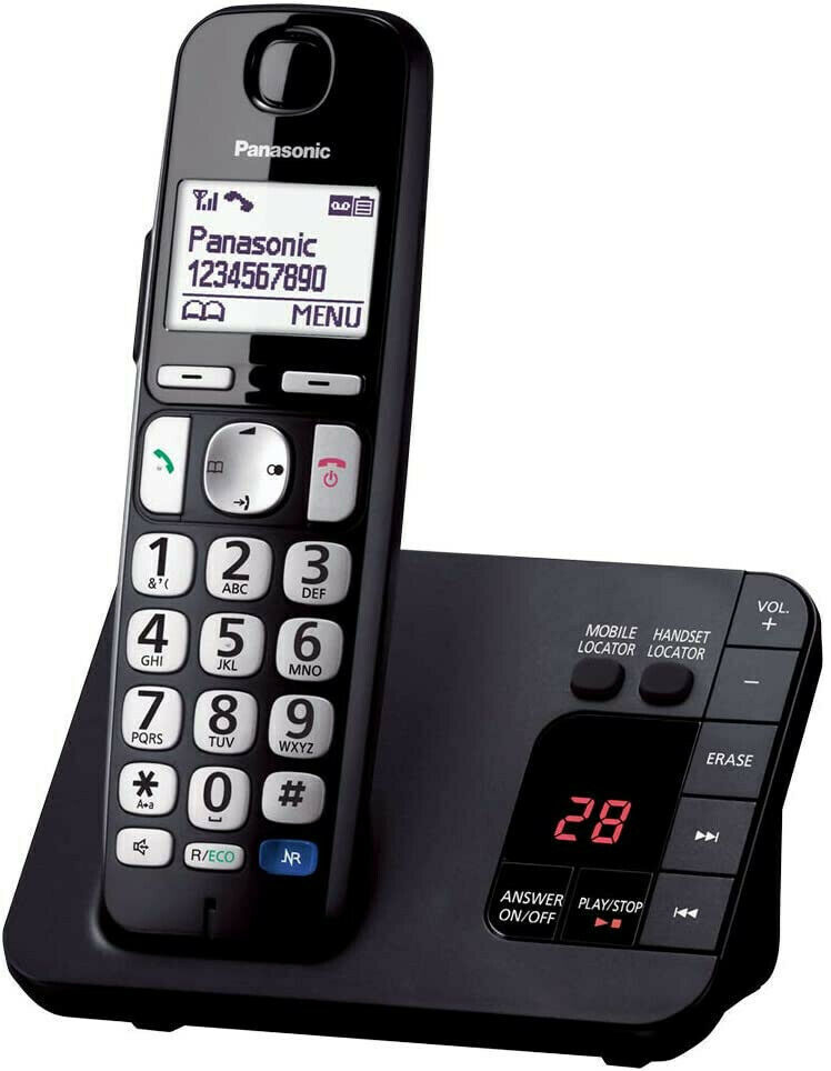 Panasonic KX-TGE110E Big Button Single DECT Cordless Telephone with Nuisance Call Blocker & LCD Display (Single Handset Pack) - Black