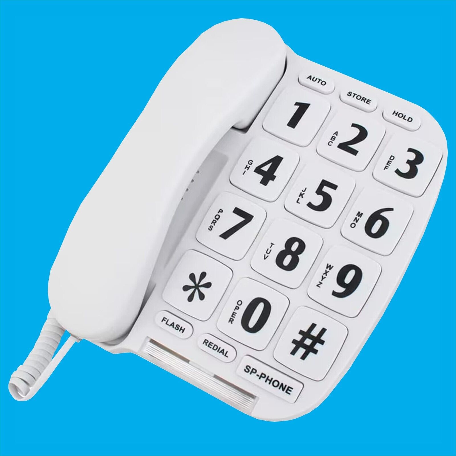 Big Button Landline Phone, White Corded Telephone, House Landline Telephone wit