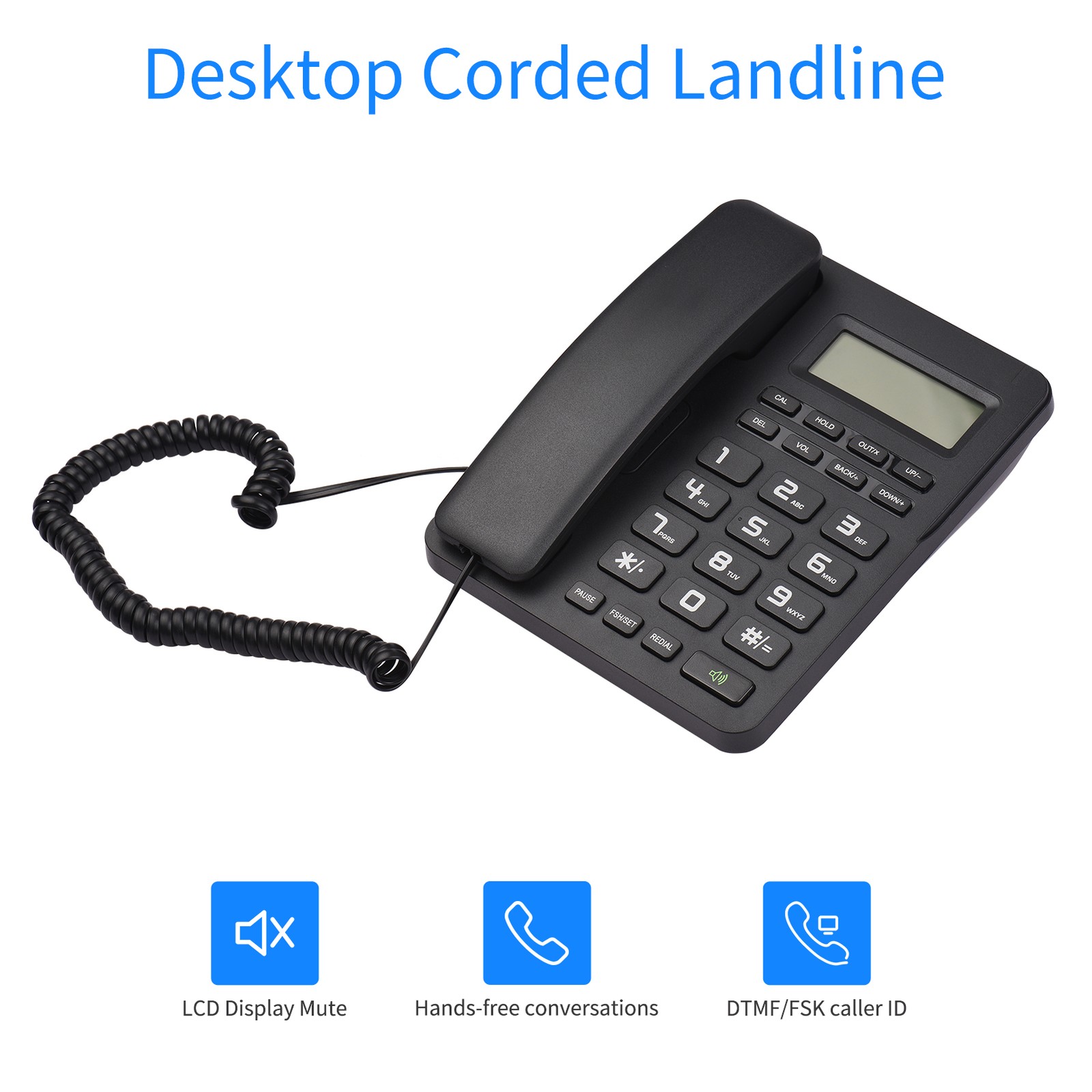 New Black Corded Phone Landline Telephone Big Button Wired Phone For Household