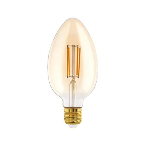 Eglo Dimmable E27 Filament LED Candle Light Bulb Mid Size, Big Amber Vintage Edison lamp, 4.5 watt (Equivalent to 40 watt), 470 Lumen, Warm White Glow, 2200 Kelvin, B80, Ø 3"