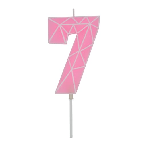 DERVENTA Birthday Candle Big Number 3D Macaron Pink 3.7 inch Party Celebration Anniversary Decoration Cake Topper 1 Piece (Number 7 Macaron Pink)