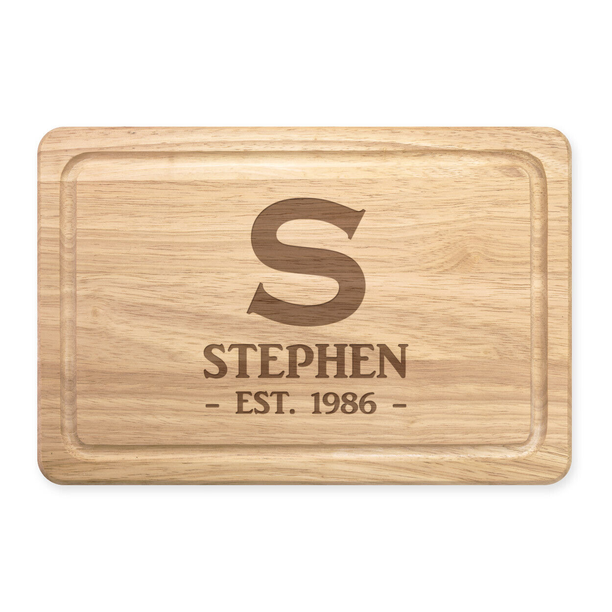 Personalised Chopping Board Big Letter Est Birthday Wooden Custom 21st 30th Dad