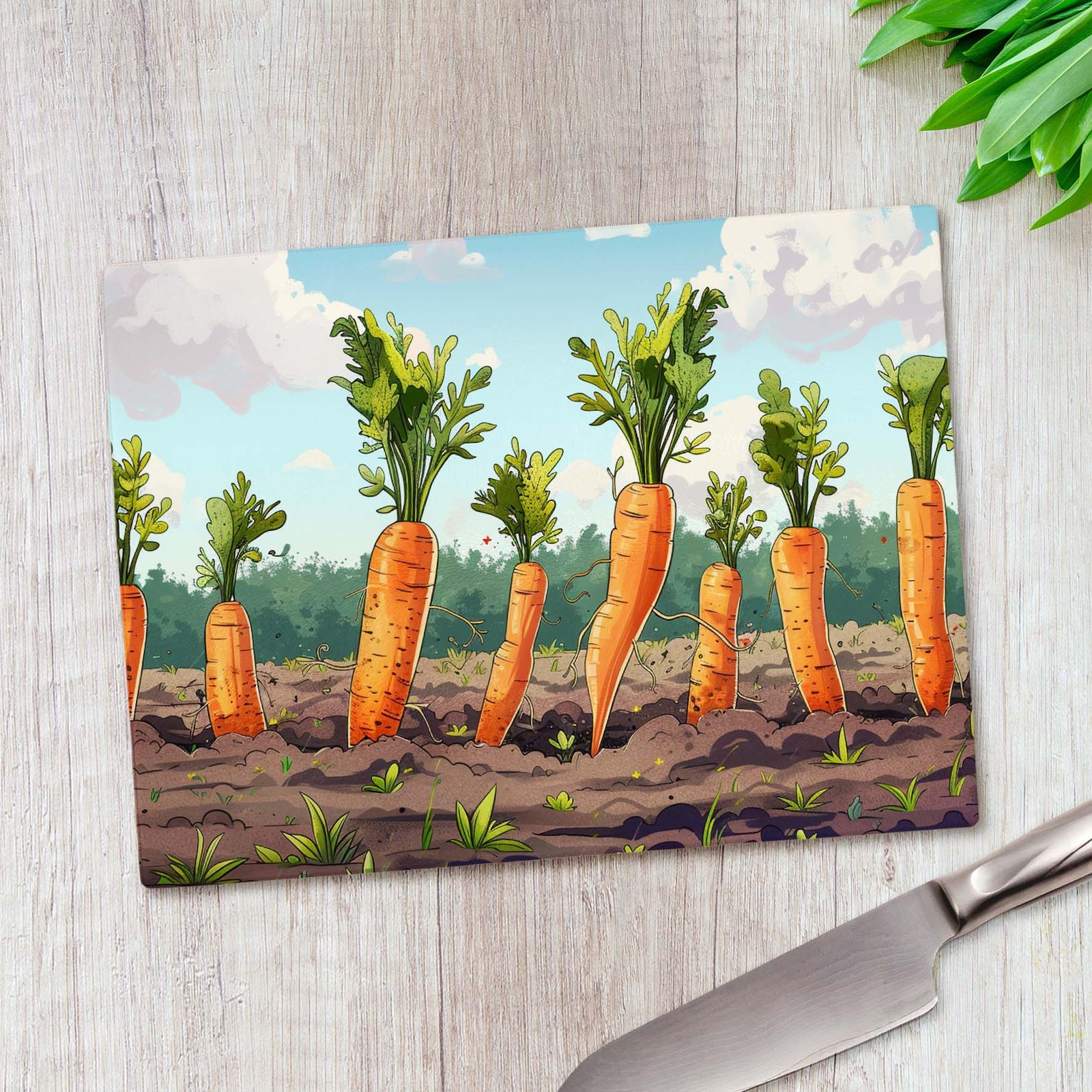 Illustration of Big Carrots Glass Chopping Board Large Kitchen Worktop Saver