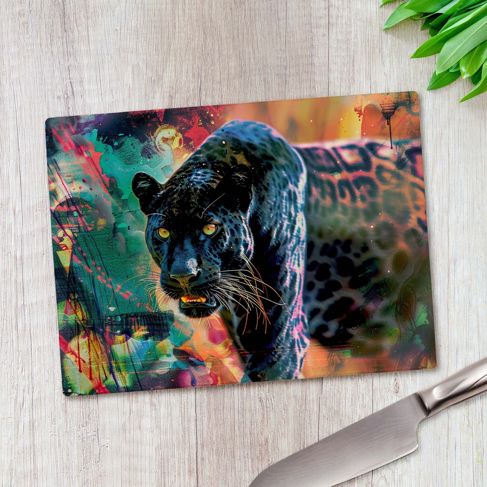 Abstract Panther Big Cat Glass Chopping Board Large Kitchen Worktop Saver