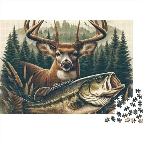 Deer Fishing Scene 1000 Piece Jigsaw Puzzle Deer with Big Fish for Adult Educational Games Home Decoration Difficult Challenging Birthday Gifts 38x26cm