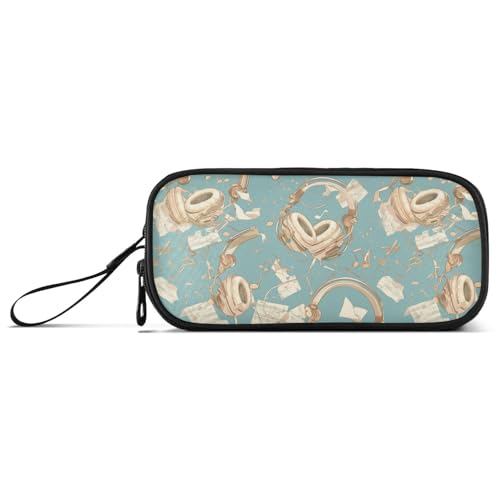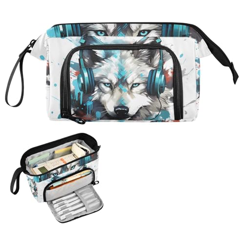 Reiacy Wolf Headphones Large Pencil Case, Big Capacity Pencils Pouch with Handle, Pen Bag for Girls Boys Women, Ideal for Travel School Office Gift