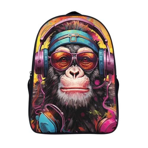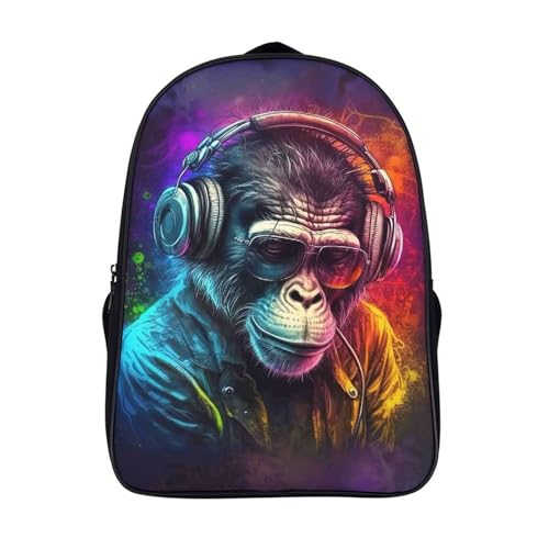 two compartment casual rucksack 3d printing eyeglasses and headphones casual daypack cool chimpanzee firm large capacit bag with big pockets-16inch,laptop backpack outing school traveling work