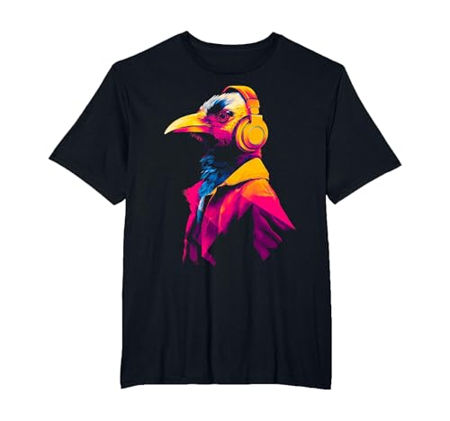 Bird Headphones T-Shirt, Men's Big and Tall, Black, 5X Tall