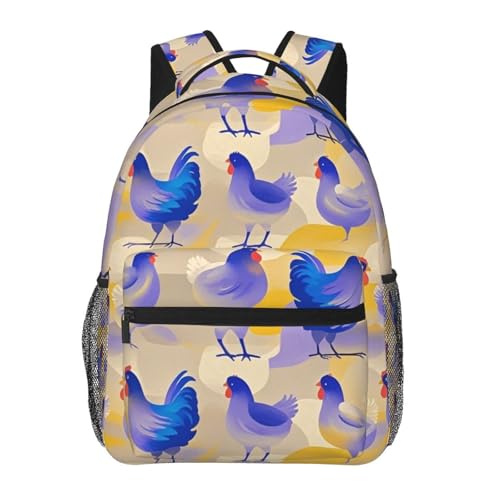 peiyeety Rustic Farmhouse Chicken Rooster Art Rucksacks Lightweight Multipurpose Anti-Theft Shoulder Bag Big Capacity Laptop Book Bag Rucksack With Padded Straps