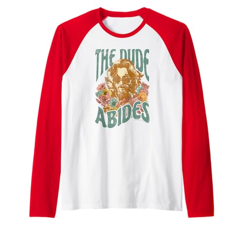 The Big Lebowski Dude Abides Floral Portrait Raglan Baseball Tee