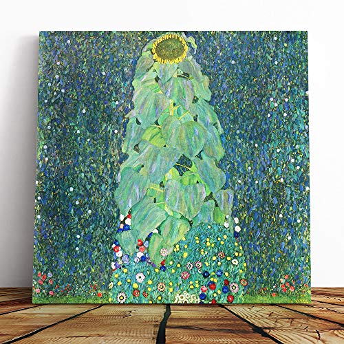 Big Box Art Canvas Print Wall Art Gustav Klimt The Sunflower | Mounted and Stretched Box Frame Picture | Home Decor for Kitchen, Living, Dining Room, Bedroom, Hallway, Multi-Colour, 20x20 Inch