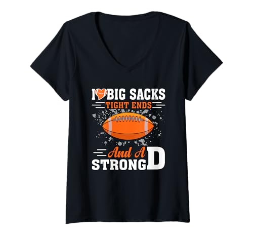 Womens I Love Big Sacks Tight Ends and Strong D Funny Football V-Neck T-Shirt
