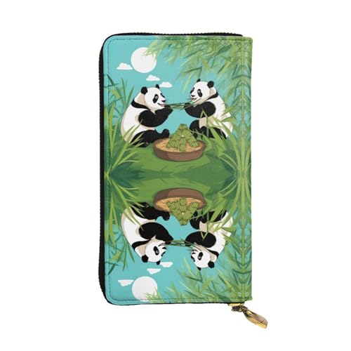 Qwvbn Two Cute Big Pandas Prints Leather Long Clutch Wallet for Storing Cash Checks, and Mobile Phones Suitable for Both Men and Women.