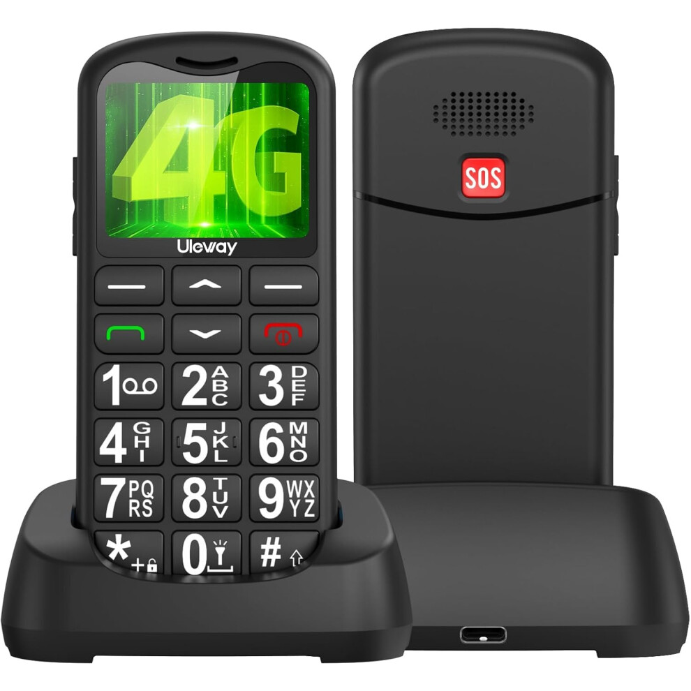 USHINING 4G Senior Mobile Phones SIM Free Unlocked, USB-C Charging Big Button Mobile Phone for Elderly, Elderly Friendly Basic Simple Mobile Phone with Charging Dock,SOS Button,Large Volume,FM Radio