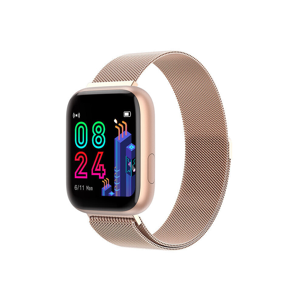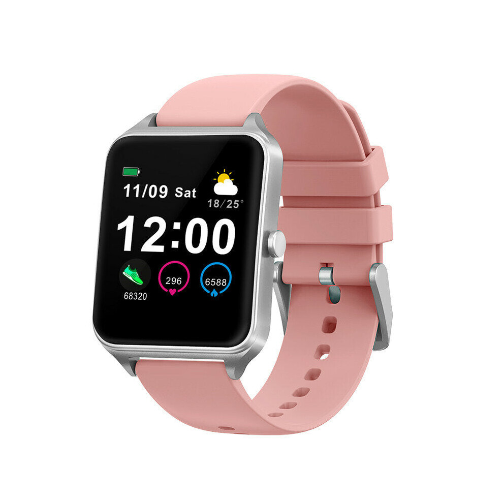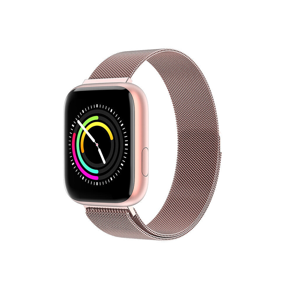 (Pink) 1.4 Inch Big Display Full Touch Wristband Metal Case Blood Pressure Monitor Weather Forecast Smart Watch