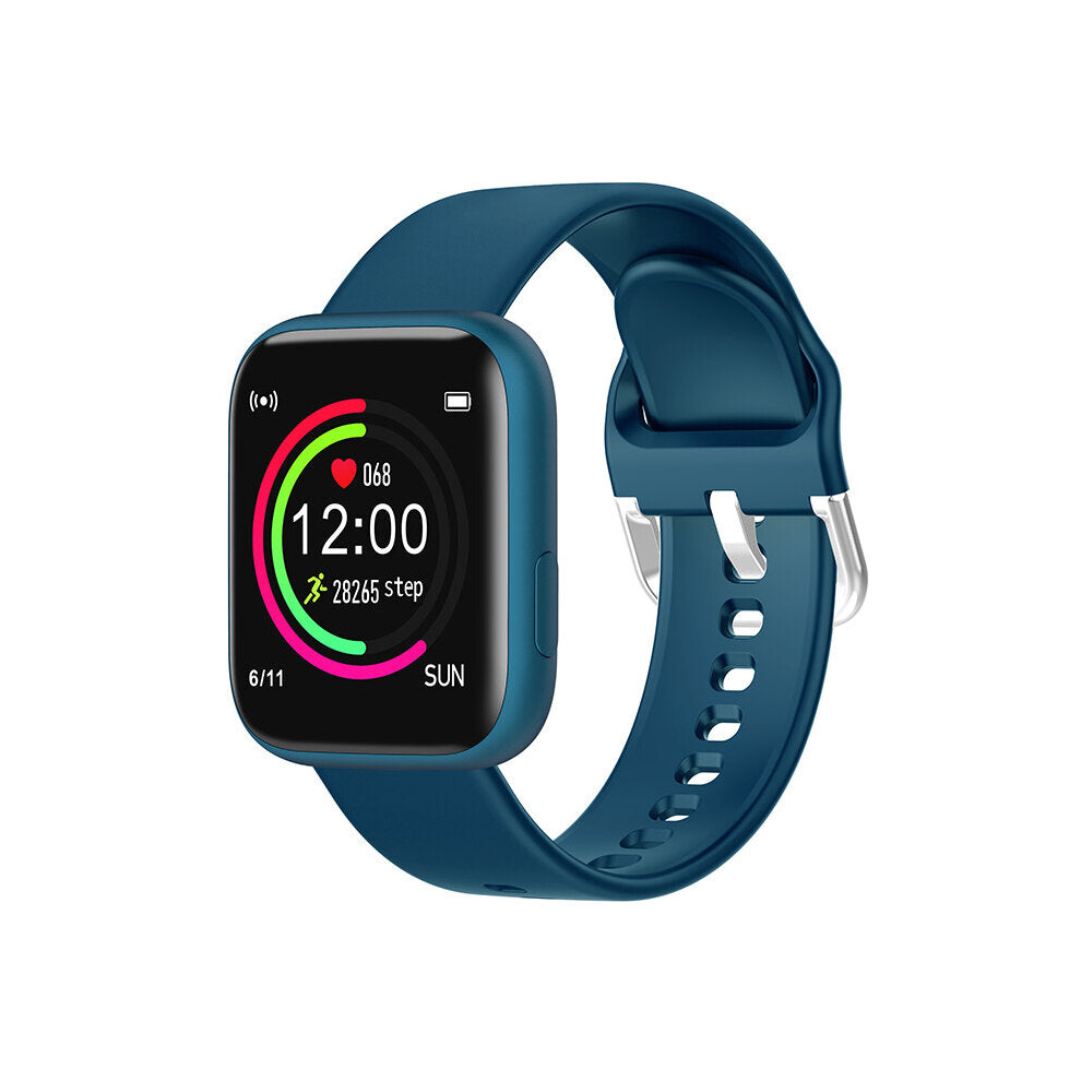 (Blue-Silicone) 1.4inch Big Full Touch Screen 24h Heart Rate Blood Pressure O2 Monitor Weather Push Smart Watch