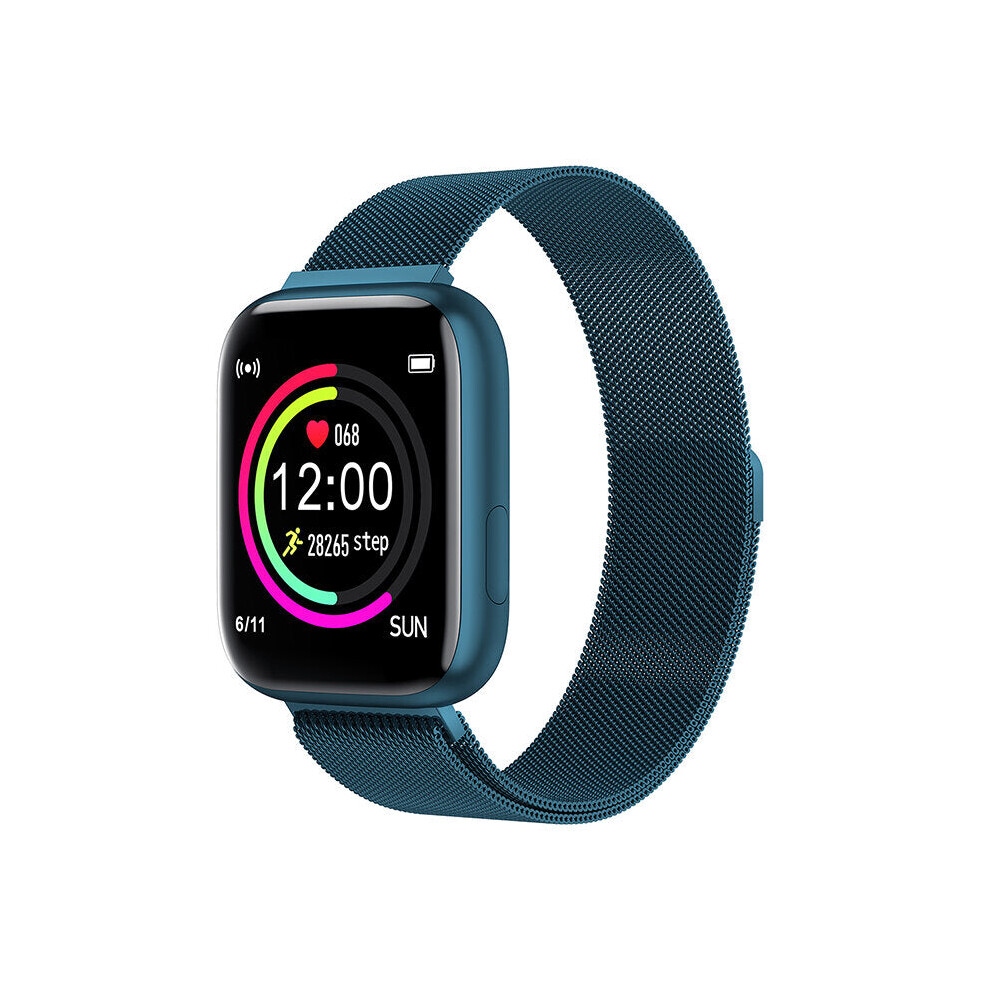 (Blue) 1.4 Inch Big Display Full Touch Wristband Metal Case Blood Pressure Monitor Weather Forecast Smart Watch