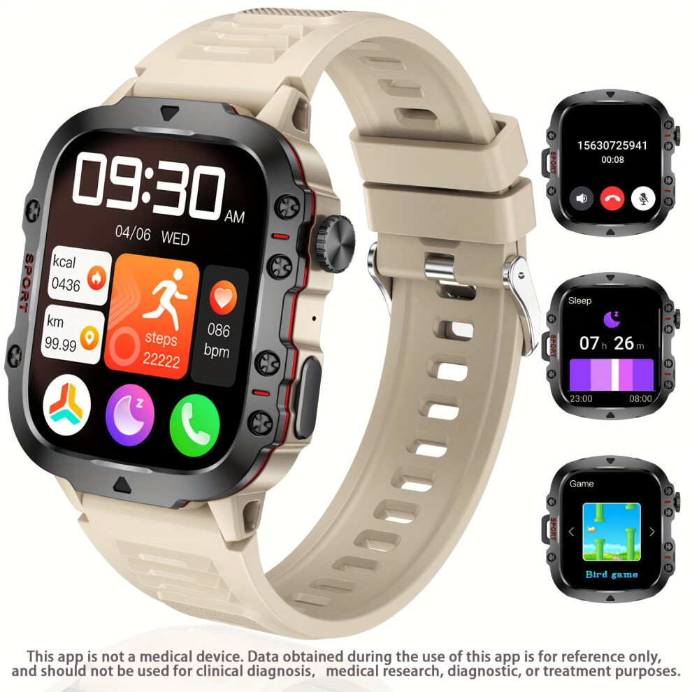 (Khaki) HD Big Screen Business Style Smart Watch Blood Pressure Oxygen Monitor Wrist Band