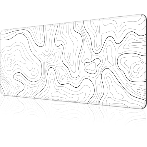 Rinaze Extra Large Gaming Mouse Pad with White Topographic, XXL Mousepad, Big Mouse Mat Desk Pad, Non Slip Keyboard Pad for Gaming Computer Laptop PC Office Desk Accessories