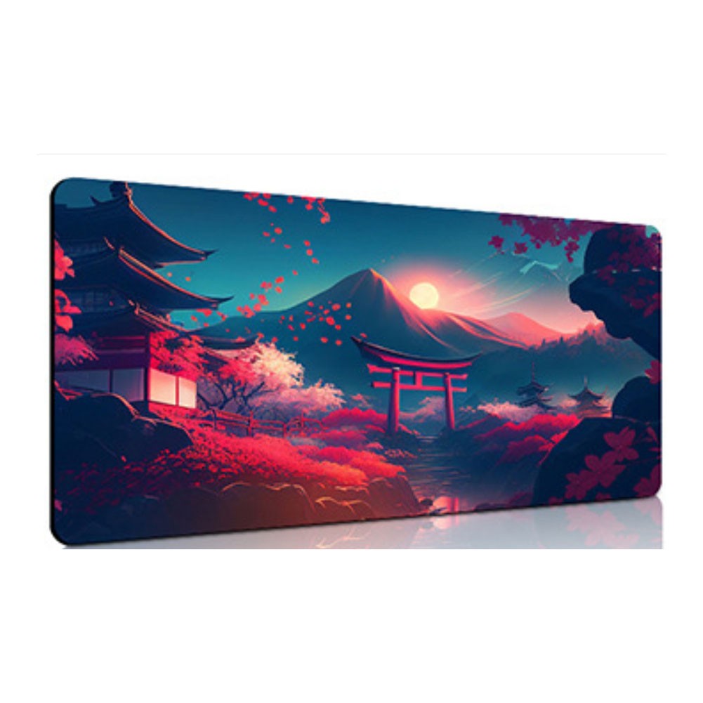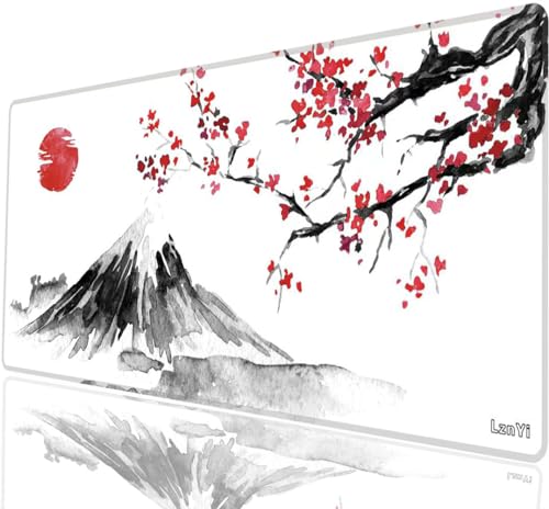 Extended Large Gaming Mouse Pad 35.4 X 15.7 Inch XXL Full Desk Japanese Art Style Cherry Blossom & Sakura Mousepad Non-Slip Rubber Base Big Keyboard Mat with Stitched Edges for Home Office