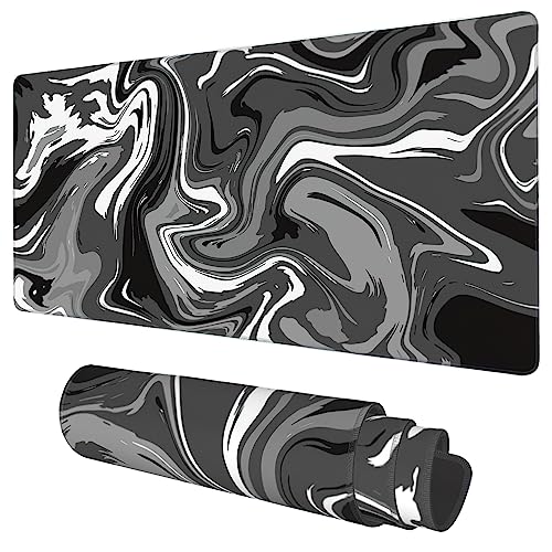 Desk Mat, Abstract Black White Ink Liquid Waves Extended Gaming Mouse Pad Large, 31.5"x11.8" Big Mouse Pad with Non-Slip Base and Stitched Edge, Long Computer Keyboard Mouse Mat for Home Office Work